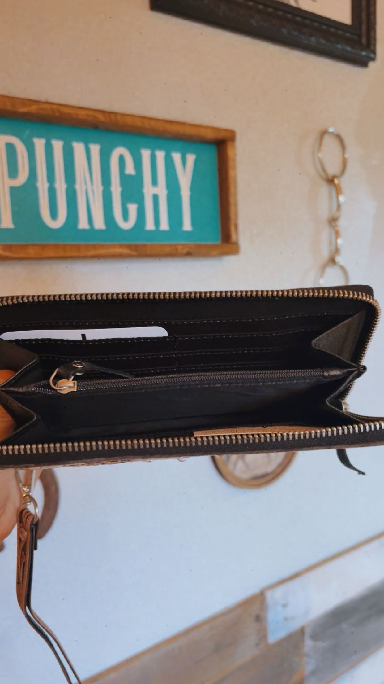 The Bridle Belle Tooled Leather Wallet showcases expert craftsmanship with intricately tooled leather on both front and back. Its front is accented by a distinctive snaffle bit, adding a refined equestrian touch. Designed for functionality, it includes a detachable tooled leather wristlet, 12 credit card slots, a secure zipper change pocket, and two additional compartments, providing organized storage for all essentials. This wallet combines durability and sophisticated design for the discerning user.