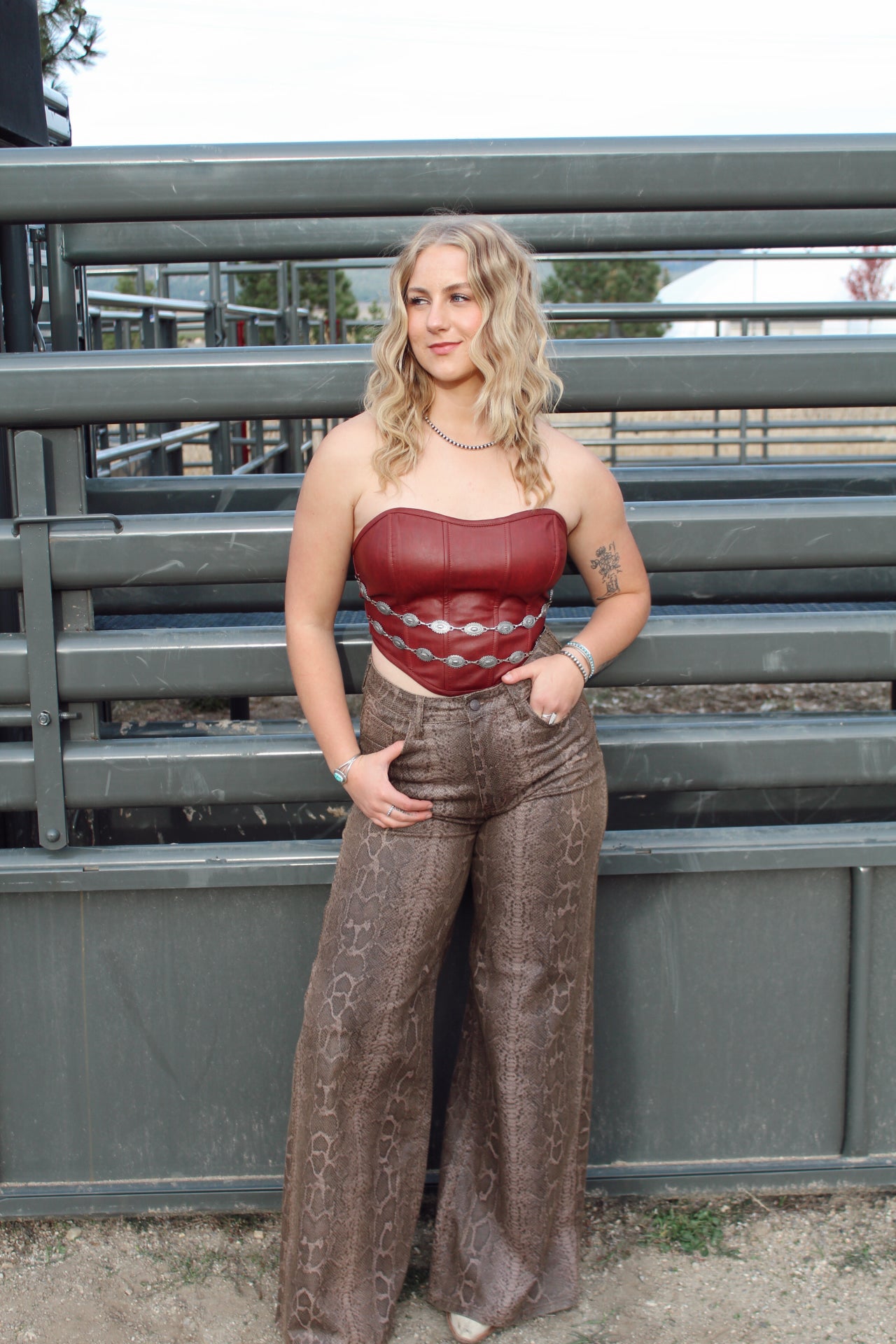 Strike bold and walk fearless in the Rattler Reign Jeans. Where luxury meets western edge. Crafted with a sleek snakeskin-inspired texture and a tailored flare fit, these jeans bring effortless sophistication to the rodeo scene.